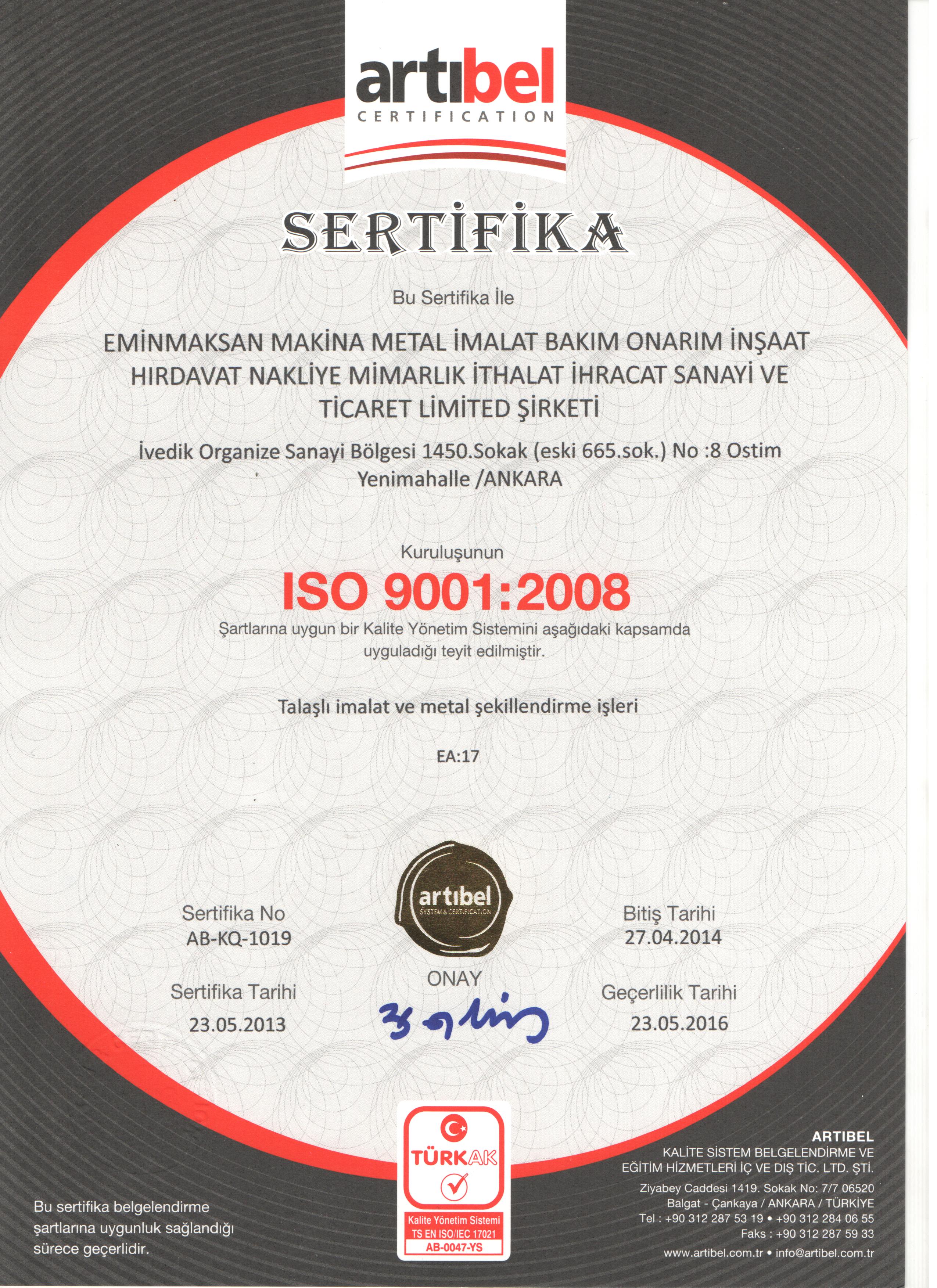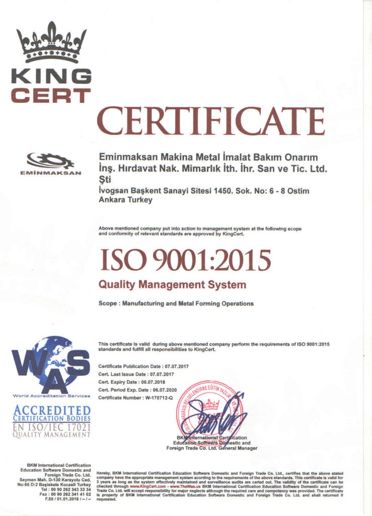 Eminmaksan Makina Metal İmalat Bakım Onarım İnş. Hırdavat Nak. Mimarlık İthalat İhracat San. ve Tic. Ltd. Şti.