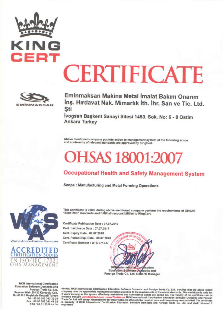OHSAS 18001:2007 İş Güvenliği Yönetim Sistemi Sertifikası
